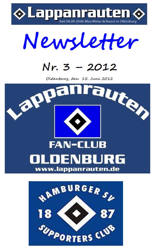 Moin! Auch wenn (fast) ganz Europa dem EM-Finale entgegenfiebert, planen wir nichts desto trotz bereits jetzt künftige Aktionen im Zeichen unserer HSV-Raute für die kommende Saison. Unser Vorstand war wieder fleißig, erstellte und verteilte einen aktuellen Newsletter. Diesen bieten wir zusätzlich in den Dateiablagen im Mitgliederbereich zum Download an. Lange Rede, kurzer Sinn. Hier die Aktionen: