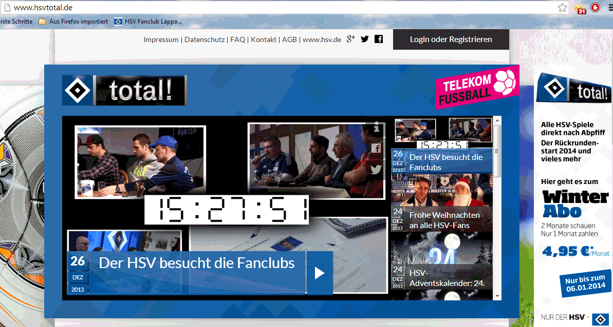 HSV total überträgt Ausschnitte von den diesjährigen Fanclub-Besuchen! Unser Lasogga-Besuch im "Match" in Oldenburg ist auch dabei. Zu sehen ist dies im kostenpflichtigen Bereich unter folgendem Link: http://www.hsvtotal.de/home