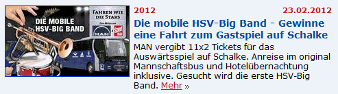 Der HSV hatte am 23.02.2012 aufgerufen sich am Gewinnspiel "mobile Bigband" zu beteiligen...